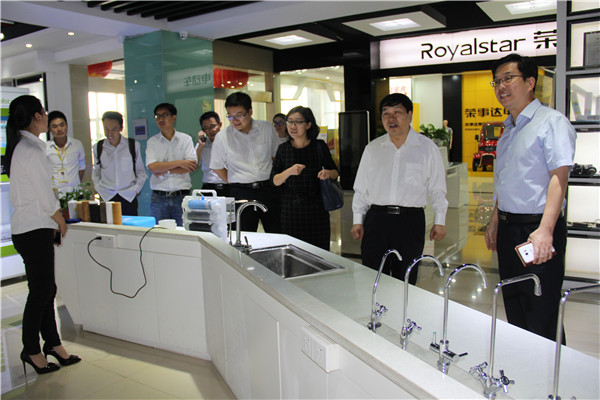 在榮事達智能家電研發(fā)中心產品展示廳,領導們饒有興趣地參觀了榮事達凈水機展區(qū),總經理支新郁講解了凈水機產品類型及所運用的反滲透過濾技術,并介紹了公司為唐山世界園藝博覽會、三亞鳳凰國際機場等場所安裝的商用凈水設備。當得知榮事達與印度德里公共事務委員會組織就新德里城區(qū)安裝自動售水設備項目達成合作意向,張博士一行人員對公司在凈水工程領域取得的突破表示了衷心的祝賀。