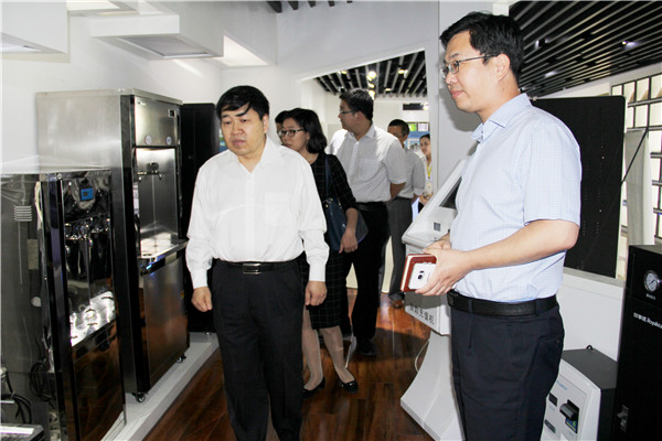 9月21日下午,國家發(fā)改委委托中國國際經濟交流中心副總經濟師、研究員、博士張永軍,副研究員、博士陳妍,助理研究員、博士田棟、孫曉濤一行人員赴皖調研創(chuàng)新企業(yè),實地查看了解企業(yè)運行情況及政策效應。在安徽省發(fā)改委綜合處副處長張云、合肥市發(fā)改委綜合處處長范觀兵等領導的陪同下,張博士一行親臨榮事達水工業(yè)公司,公司總經理支新郁陪同調研。