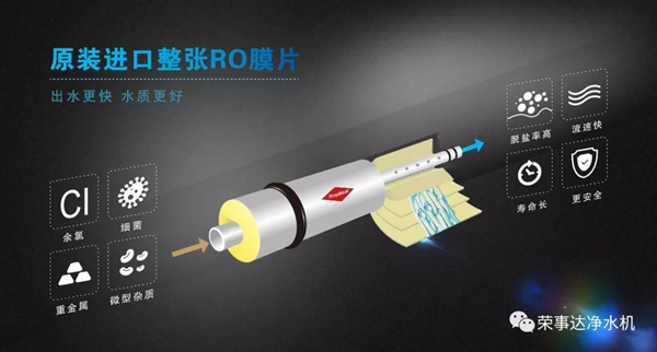榮事達專注凈水十三年,向來以出眾的凈水效果聞名。此次400G智能反滲透凈水機融入五層凈化系統、高品質椰殼活性炭濾芯等諸多先進工藝,尤其是在核心配件RO膜的選擇上,采用原裝進口整張RO膜片,性能遠遠超于市面上的碎膜壓制RO膜,凈化效果更佳,可充分去除水中余氯、細菌、重金屬等有害物質,出水可達直飲標準。