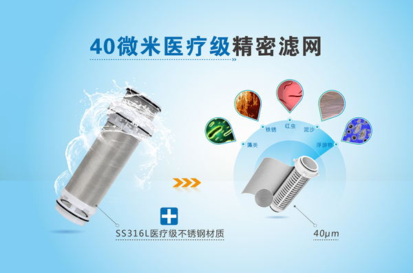 榮事達對于配件的優化不止于此。為保證其擁有更高效的凈水能力,五款智能前置過濾器摒棄市場上大多使用的90、100微米濾網,選擇過濾精度更高的40微米精密濾網,可以充分攔截水中紅蟲、鐵銹、泥沙、懸浮物等雜質,其獨特的SS316L醫療級材質,進一步保證使用放心。此外,超大定制濾網出水速度快,其中第六代新品濾網展開面積是普通前置過濾器的3倍以上,出水流量能夠達到8噸每小時,可滿足更多用水需求。