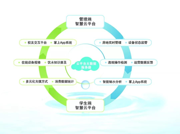 此外,榮事達著眼校園直飲水的互聯(lián)網(wǎng)化建設(shè),依托先進的云端大數(shù)據(jù)平臺、無線網(wǎng)絡(luò)體系和智能一卡通技術(shù)等,創(chuàng)新打造ultraWiFi智慧管理系統(tǒng),系統(tǒng)直連ultraWiFi凈水主機、開水器、飲水機等終端定制設(shè)備,實現(xiàn)精細化管理。學生在使用中不僅能查詢飲水消費記錄、在線報修設(shè)備、與校友交流等,還能擁有多元化充值方式選擇,充分享受快捷的智能化飲水體驗。 同時設(shè)備運營商也可通過電腦或手機APP端口接入云數(shù)據(jù)平臺,異地監(jiān)測工程運行狀況,實時掌握水電成本、消費收益、設(shè)備狀態(tài)等數(shù)據(jù)信息,日常管理更簡單。