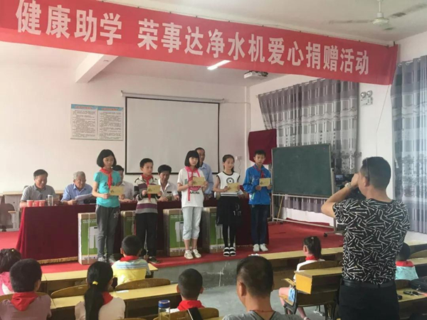 2018年6月1日,榮事達走進紅色革命老區(qū)——金寨縣,攜手金寨希望公益服務中心及地方公益協(xié)會共同發(fā)起“給山區(qū)孩子一杯水”——援建金寨中小學凈水設(shè)備公益活動。榮事達通過工程援建和設(shè)備捐贈的方式,為金寨縣所有中小學援建直飲水系統(tǒng)400多套,受到學生、學校、家長們的一致好評。該項目被全國文明辦評為“全國百佳公益項目”。
