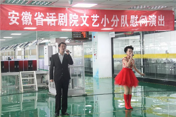 爵士舞《我的新衣》、歌曲《相親相愛》、朗誦《城市的描繪師》、團(tuán)舞《歡聚一堂》、創(chuàng)意近景魔術(shù)、特色黃梅戲等形式多樣的精彩節(jié)目將傳統(tǒng)藝術(shù)與現(xiàn)代藝術(shù)創(chuàng)新融合,揚(yáng)時(shí)尚蓄古韻,給人以耳目一新的全新視聽體驗(yàn),贏得了大家的連連掌聲。值得一提的是,生產(chǎn)制造中心總經(jīng)理孫曉峰參與了黃梅戲的互動表演,孫總嘹亮專業(yè)的唱腔,臺下觀眾無不為其喝彩。表演過后,大家仍意猶未盡,津津樂道。技術(shù)員小王說道:“這次表演我感受到了政府和安徽省話劇院對我們普通職工群眾的關(guān)懷,心里很暖,可以鼓足干勁投入工作了?!?/P>