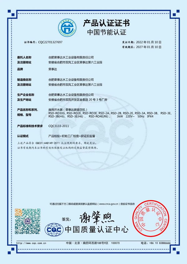 榮事達(dá)RSD-RO4E直飲機(jī)時刻為安徽能啟電氣科技有限公司的員工們提供便捷、多樣化、健康的飲水方式。