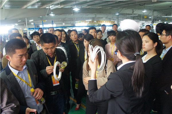 為了讓學員深入了解新品,榮事達開放工廠,讓學員可以參觀每一個生產環節,了解產品零部件質量,切身感受榮事達生產、檢測產品的嚴格規程和標準。學員們還被領進倉儲物流車間,了解榮事達臻于細節的產品包裝措施。