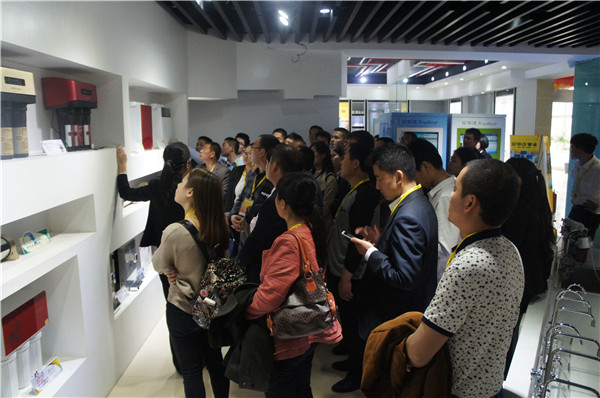 在大氣時尚的展廳,具備雙膜雙出水、濾芯更換智能提醒等多重功能的R8s雙膜櫥下凈水機,融RO反滲透過濾、智能顯示、自動化沖洗、防漏水設計于一體的R8櫥下智能純水機,三秒即熱、多檔水溫水量調節的速熱飲水機等多款新品悉數亮相。在詳細的講解和測試下,學員們對新品功能、適用市場有了全面了解。