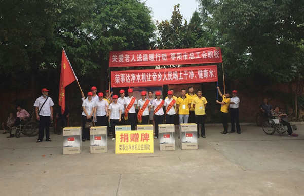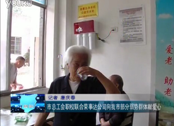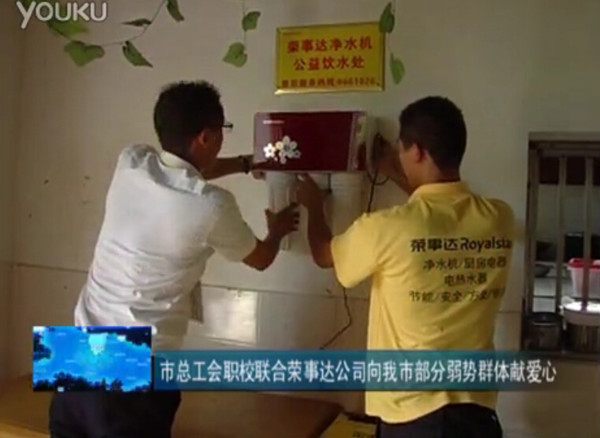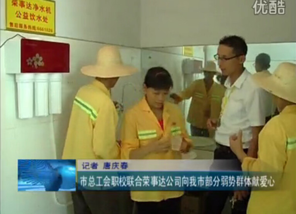 •     7月12日,榮事達(dá)水工業(yè)公司聯(lián)合棗陽(yáng)市總工會(huì)職校開展捐贈(zèng)凈水機(jī)等愛心活動(dòng),受到當(dāng)?shù)厝罕娨恢潞迷u(píng)與媒體高度關(guān)注,棗陽(yáng)綜合頻道、經(jīng)視頻道、都市頻道等多家媒體對(duì)活動(dòng)進(jìn)行了報(bào)道。