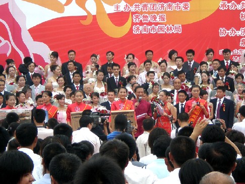 摘要:9月20日,備受關(guān)注的“圓百年夢(mèng)想,結(jié)百年情緣——2008中國(guó)濟(jì)南市齊魯情玫瑰婚典”大型集體婚禮在濟(jì)南市泉城廣場(chǎng)開(kāi)幕,本屆是由濟(jì)南市團(tuán)市委、杭...